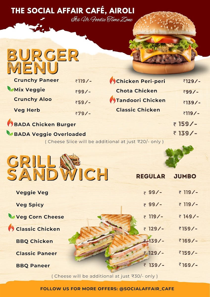 Introducing the menu of Global Affair Cafe, formerly known as Social Affair, offers an enticing array of flavors that reflect the diversity of global cuisine in a cozy setting. Located in Airoli, Navi Mumbai, this cafe captures the essence of a social gathering place with its delicious dishes and inviting ambiance.